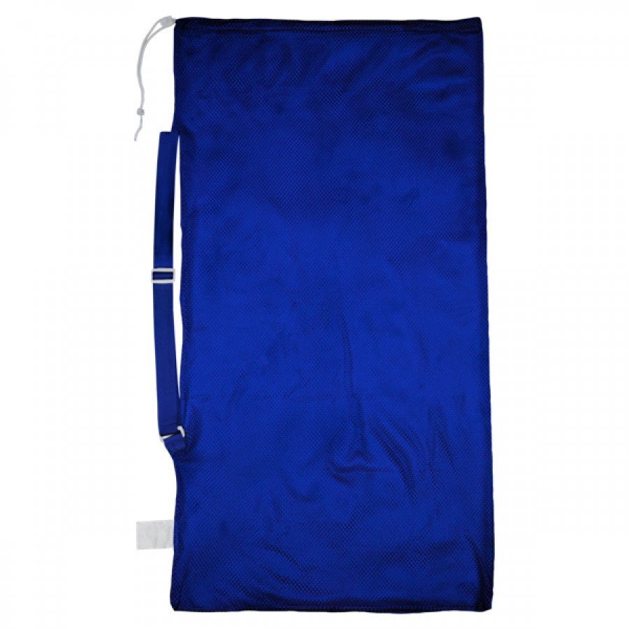 The Champion Sports Mesh Equipment Bag is made of heavy-duty nylon with a drawstring cord, lock and ID tag. This bag is available in multiple colors and has an adjustable shoulder strap.