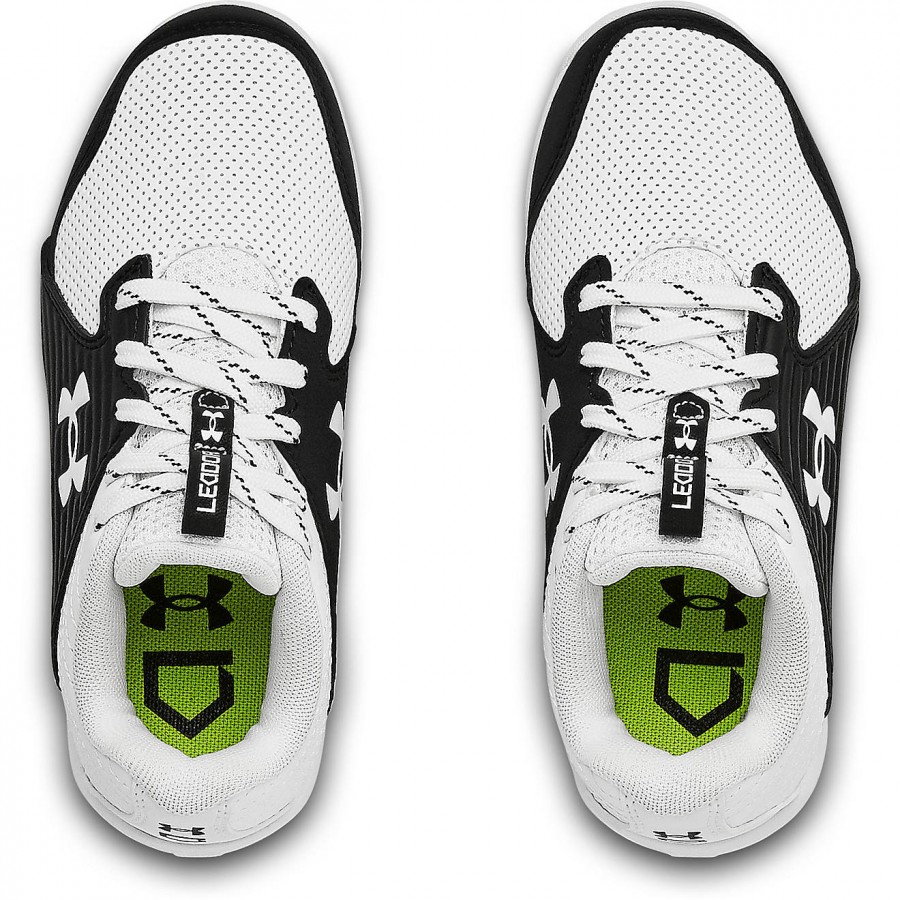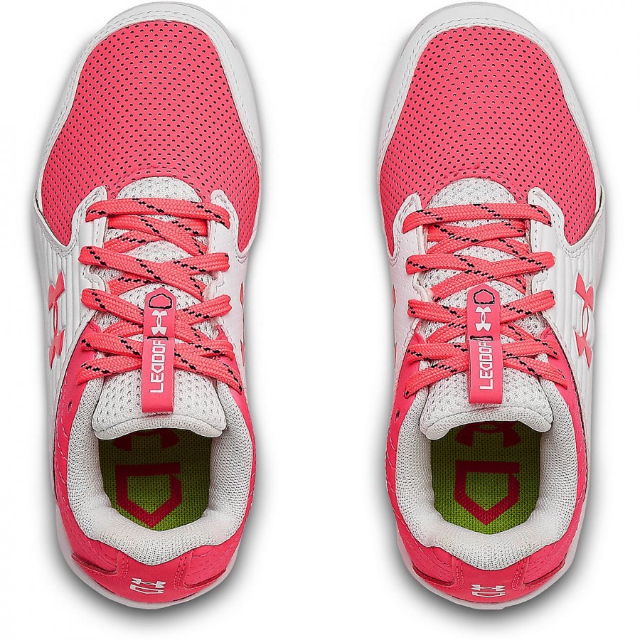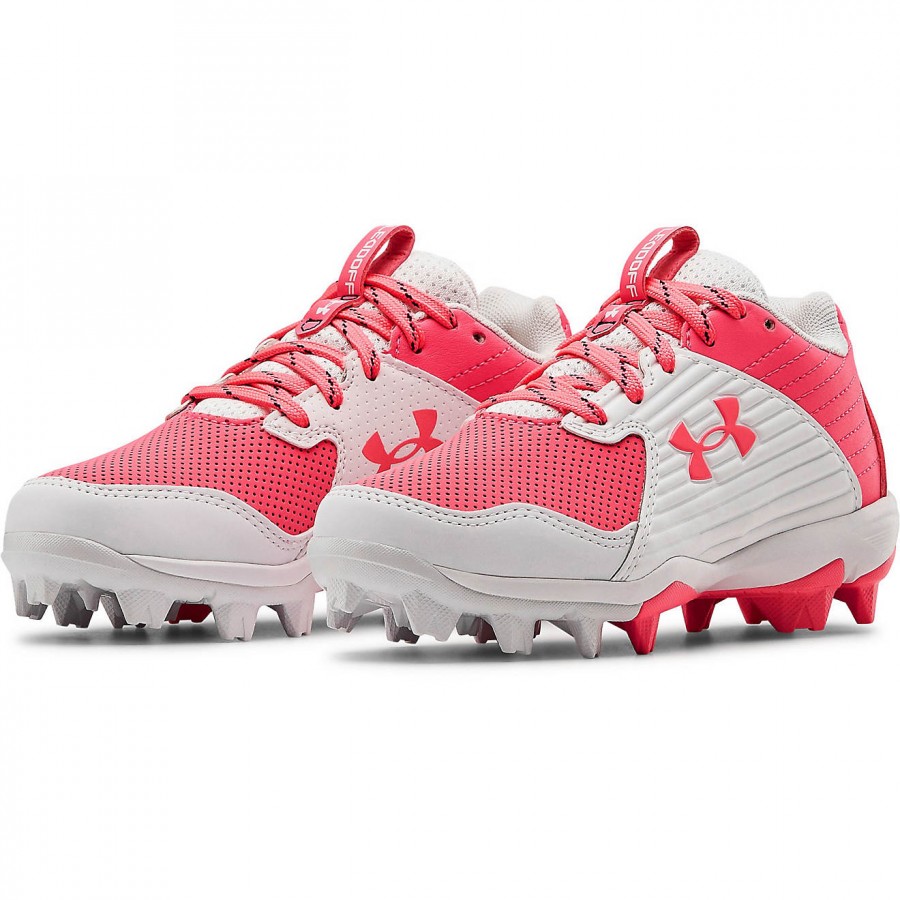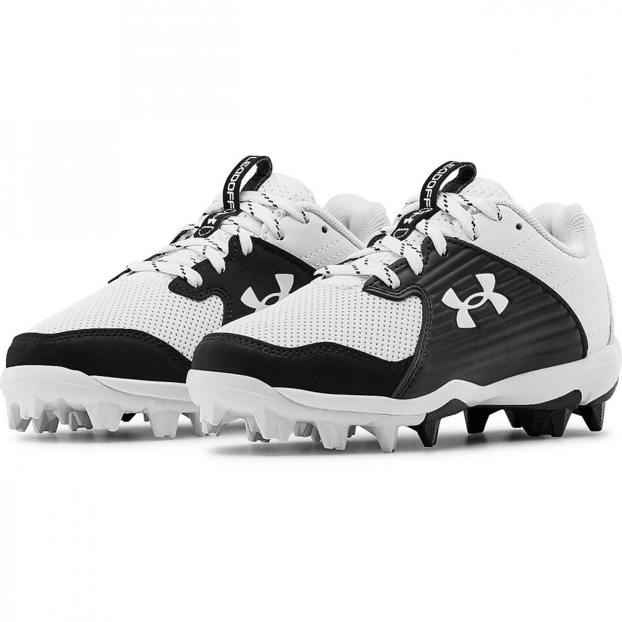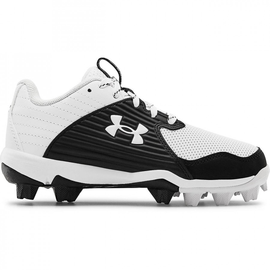 Sprint across the diamond wearing the Under Armour Kids’ Leadoff Low RM Jr. Baseball Cleats. Lightweight and durable, these cleats feature synthetic uppers with toe-cap overlays and padded collars and heels. The rubber-molded cleats deliver tough traction on most surfaces, while the EVA midsoles evenly distribute pressure to help keep your feet comfortable with each step.